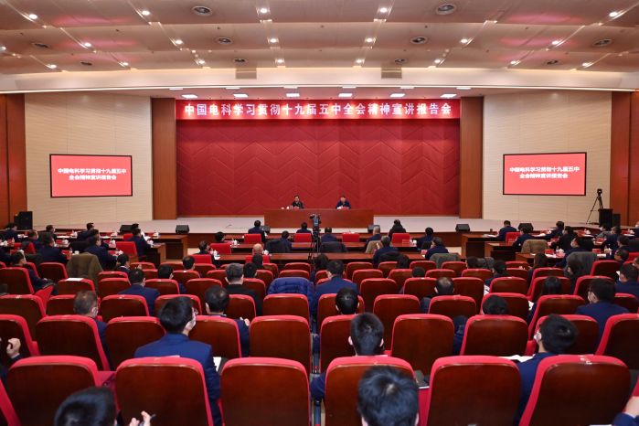 12月31日,中國電科學習貫徹黨的十九屆五中全會精神宣講報告會在京舉行,黨組書記、董事長陳肇雄作宣講報告,黨組副書記、總經理吳曼青主持,集團領導彭岡、李立功、黃興東、高濤、都本正參加會議。