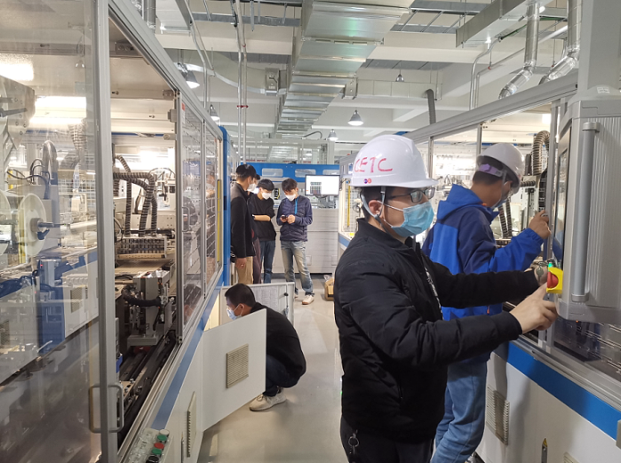 方案確定,馬上實施,毫不耽擱。團隊與時間賽跑,直至攻破技術難關,成功完成首臺串焊機二次配接線工作,雖然時間已是凌晨,但是每個人的臉上都寫著“值得”兩個字!一個可能導致項目嚴重滯后的問題在24小時內妥善解決,無不彰顯電科人走好科技自立自強之路的拼搏精神!