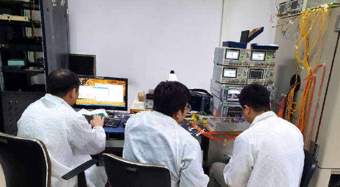 驗(yàn)證與測(cè)試工作也馬不停蹄。產(chǎn)品初樣焊裝完成后,光傳輸部員工絲毫沒(méi)有歇息,立刻緊鑼密鼓地投入到了調(diào)試和改進(jìn)工作中。從調(diào)試的第一天開(kāi)始,相關(guān)負(fù)責(zé)人就從未離開(kāi)第一線,時(shí)時(shí)刻刻都在指揮協(xié)調(diào),甚至還與驗(yàn)證與測(cè)試員工一起設(shè)置溫箱、記錄數(shù)據(jù)、測(cè)試流程、改進(jìn)軟件,焊線、接線、調(diào)儀器……他們齊心協(xié)力堅(jiān)守崗位,周末無(wú)休,終于,在大家的共同努力下,國(guó)產(chǎn)化光轉(zhuǎn)換組件通過(guò)一次次評(píng)審,開(kāi)始為用戶供貨!