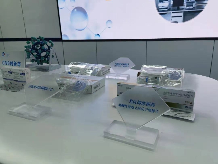 石家莊市國(guó)際生物醫(yī)藥園規(guī)劃展館內(nèi)展出的部分藥品。 邵玉姿 攝
